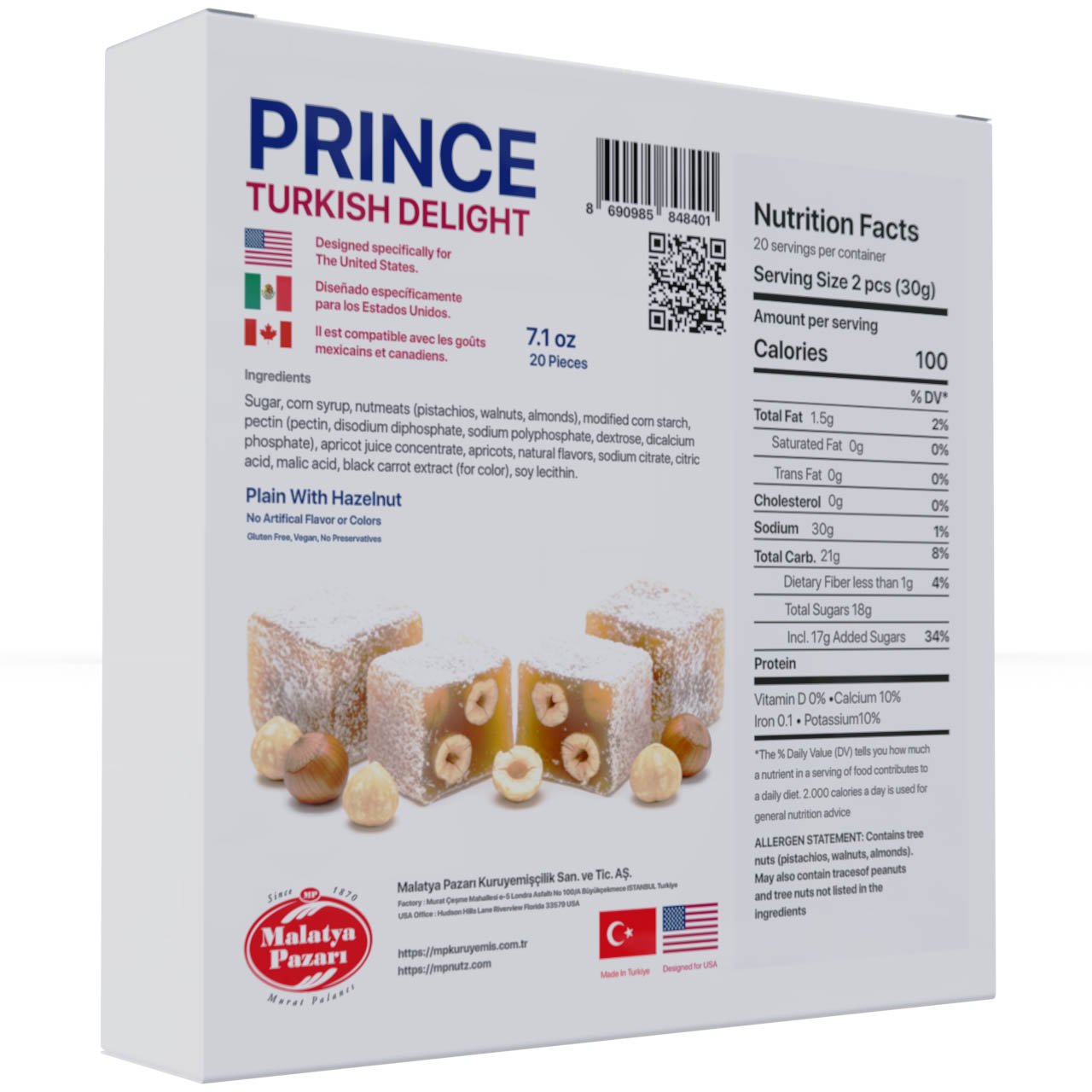 Prince Turkish Delight Plain With Hazelnut 7.1 oz